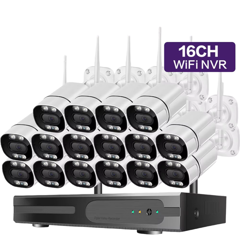 Eseecloud 16CH 5MP ngoài trời cctv Bộ giám sát 2-cách âm thanh không dây Wifi NVR Kit 16 kênh an ninh nhà Hệ thống camera